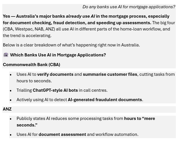 Currently, 76.8 per cent of mortgages are arranged through brokers. Right now, AI probably assists these figures.
